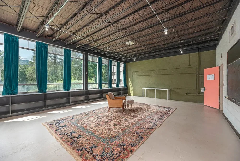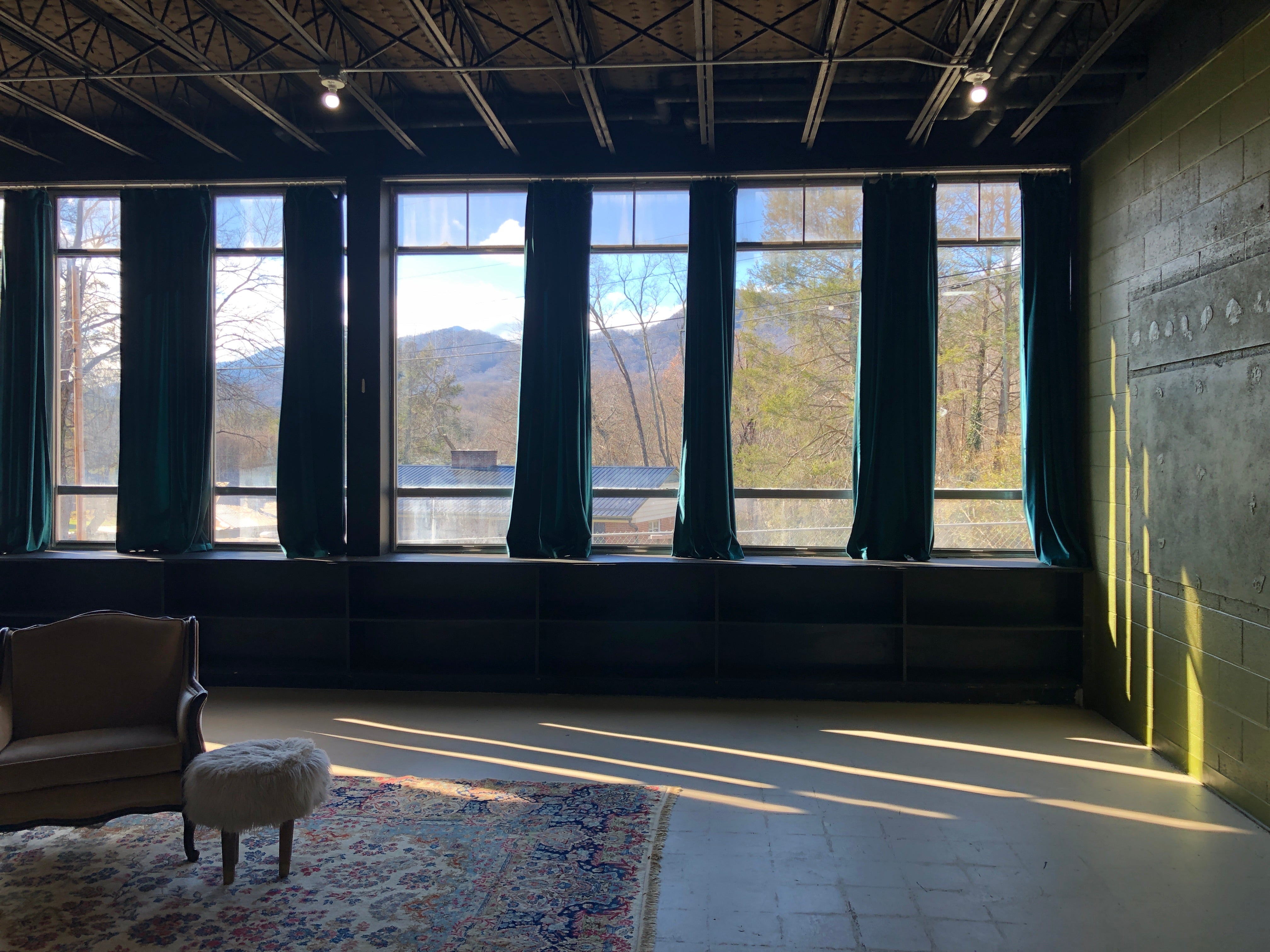 This beautiful room will soon hold creativity, reflection, and community. The images below show the space in its present state as it becomes a welcoming home for workshops and gatherings. With tall ceilings, soft light, and mountain views through the windows, the room already feels open and calming, a place where people can breathe and make art with ease.